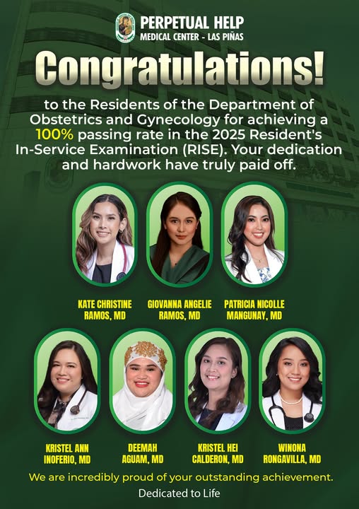 Congratulations to our Obstetrics and Gynecology residents for achieving a remarkable 100% passing rate in the 2025 Resident’s In-Service Examination. Your commitment, excellence, and dedication to service reflect the highest standards of our institution. We are truly proud of your outstanding accomplishment. Your success inspires the entire medical community today.
