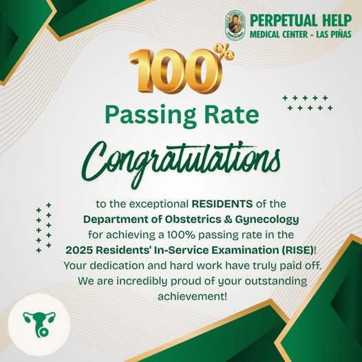 Congratulations to the exceptional OB-GYN Residents of Perpetual Help Medical Center – Las Piñas for achieving a 100% passing rate in the 2025 Residents’ In-Service Examination (RISE)!