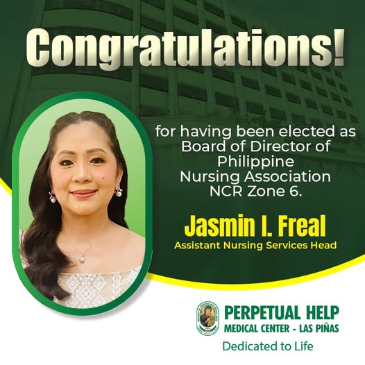 Here’s a big shout out to Jasmin Freal, Assistant Nursing Services Head, for having been elected as Board of Director of Philippine Nursing Association NCR Zone 6.