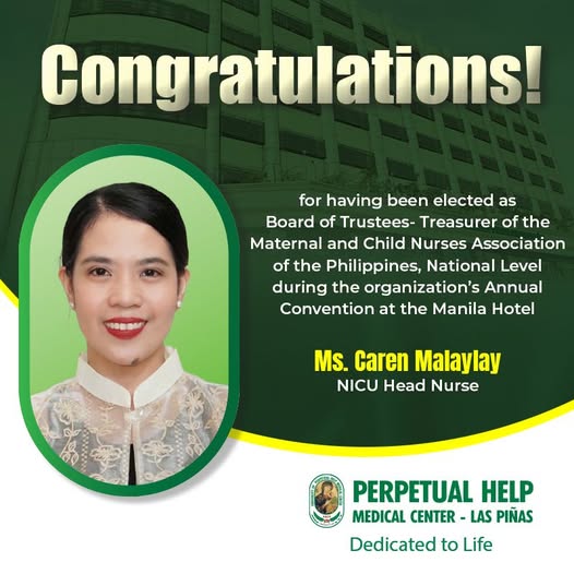 Perpetual Help Medical Center – Las Piñas proudly celebrates our very own Ms. Caren Malaylay, NICU Head Nurse, for a remarkable achievement!
